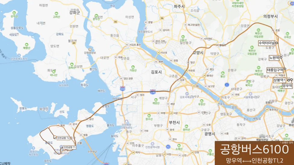 6100번 공항버스는 서울 중랑구 망우역에서 출발하여 인천국제공항 제2터미널까지 운행합니다. 배차 간격은 약 15~40분으로, 주말과 공휴일에도 동일한 배차로 운영됩니다.